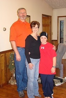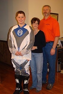 Parker, me and Greg after Christmas breakfast. Parker is showing off his new motorcycle gear that we gave him.