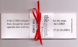 Julie has been kind enough to do custom Scripture Stickies for me with The Point Ministries name on the label and I will be offering these for sale at any events where I speak and teach. Again, thanks Julie for partnering with me in Challenge 2010.