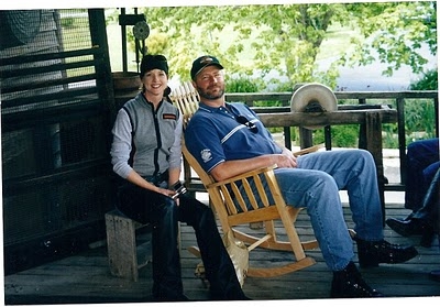 Greg and me on the back porch at the Mast General Store in Valle Crucis, NC. Taking a rest and letting the engine on the Harley cool!!
