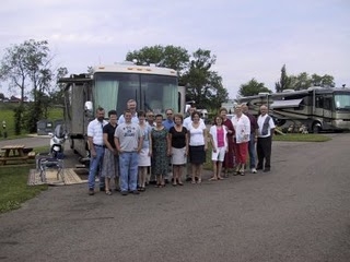 Here is part of our group as we are getting ready to go to church. We attended Pleasant View Mennonite Church. Greg is the tallest guy in the group and I am standing in front of him. I know, I know you thought it was an angel because of my white legs, but really I did have some self tanner on. I am just so white that it takes a LOT of self tanner to give me any color.