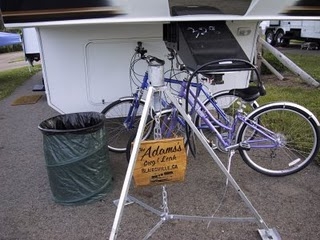 Many people who camp bring along bicycles to ride. Greg and I had never had bicycles since we were kids and really never anticipated getting any. However, we did fall to the temptation while we were in Ohio. The group that we were with had purchased their bikes at a bike shop in Ohio from David Beachy and so we decided to take the plunge.