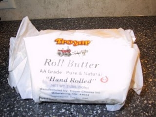 If the bicycle incident was the low point of our trip, the visit to Guggisberg Cheese factory was one of the high points. We purchased freshly made cheeses of all varieties, but the thing I was MOST excited about was this!! OHHHHH, Paula Deen would have been so proud of me! This is a 2 pound roll of fresh B-U-T-T-E-R. Let me tell you, when I tasted this, I really thought I had died and gone to heaven. I bought 2 rolls. Yes, 4 pounds of real, creamy, rich, fattening BUTTER. I sliced it up and froze it and will pull out a slice to use when I need it. This roll of heaven made the bicycle debacle worth every minute of embarrassment and humiliation.
