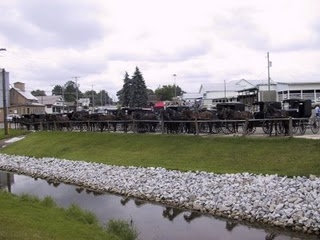 Here is a picture of tons of Amish buggies parked in town while their drivers were at the local market/auction.