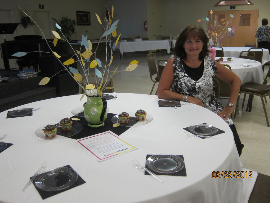 Last night The Point Ministries, in conjunction with First Baptist Church Blairsville, had the wonderful opportunity to host Praise and Coffee Night for the ladies of my area. We held it in the Fellowship Hall at our church and had a marvelous time with 65 ladies attending. Our theme was ‘Sweet Summer Delights’ and trust me, there were some delectable delights on those tables. I’ll show you those in a moment.