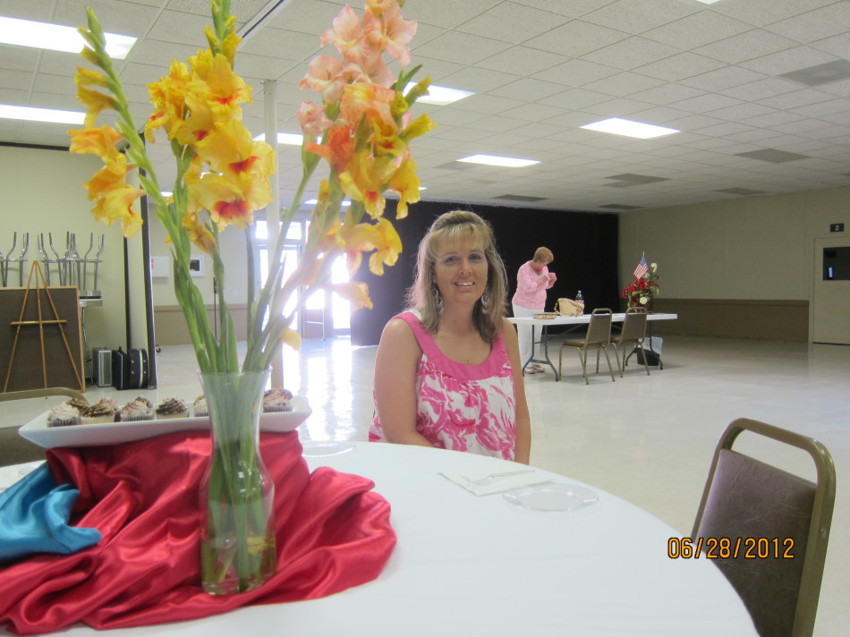 There were two beautiful tables done by my cute, young friend, Sarah Heyne, that I failed to get a pictures of. You can see one of them in this picture.