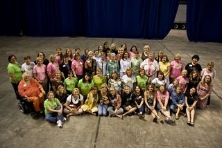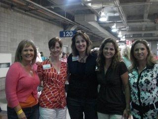One of the highlights of the weekend was the actual Siesta Fiesta where we who blog got to spend some time with Beth, Amanda and Melissa in a more intimate ( if 700 people can be intimate ) setting. We all got in groups of about 50 or so and had pictures taken with the three Moore girls. Beth is front and center in this picture, Amanda is kneeling on the far right, Melissa is in the back just to bit to the right of center. I am kneeling just to the left and behind Beth, between a lady in brown and a lady in a green t-shirt like mine.