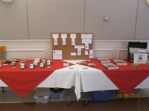 My resource table with the Legacy Bible study, Legacy DVD, Scripture Stickies, and Cupid Falls Farms soaps to entice the ladies.