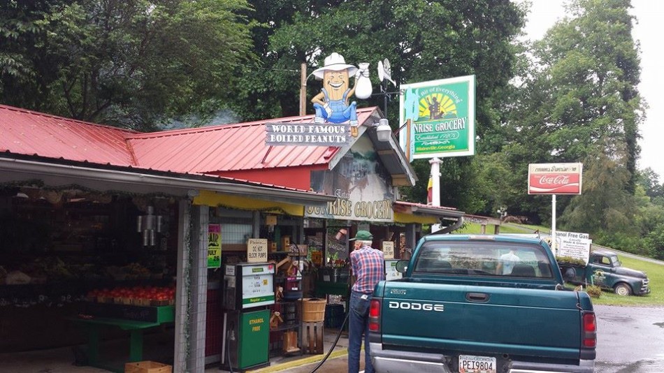 Fall means pumpkin time at Sunrise Grocery on Hwy 19-129. It is a wonderful mountain store. Love the antique car, too.